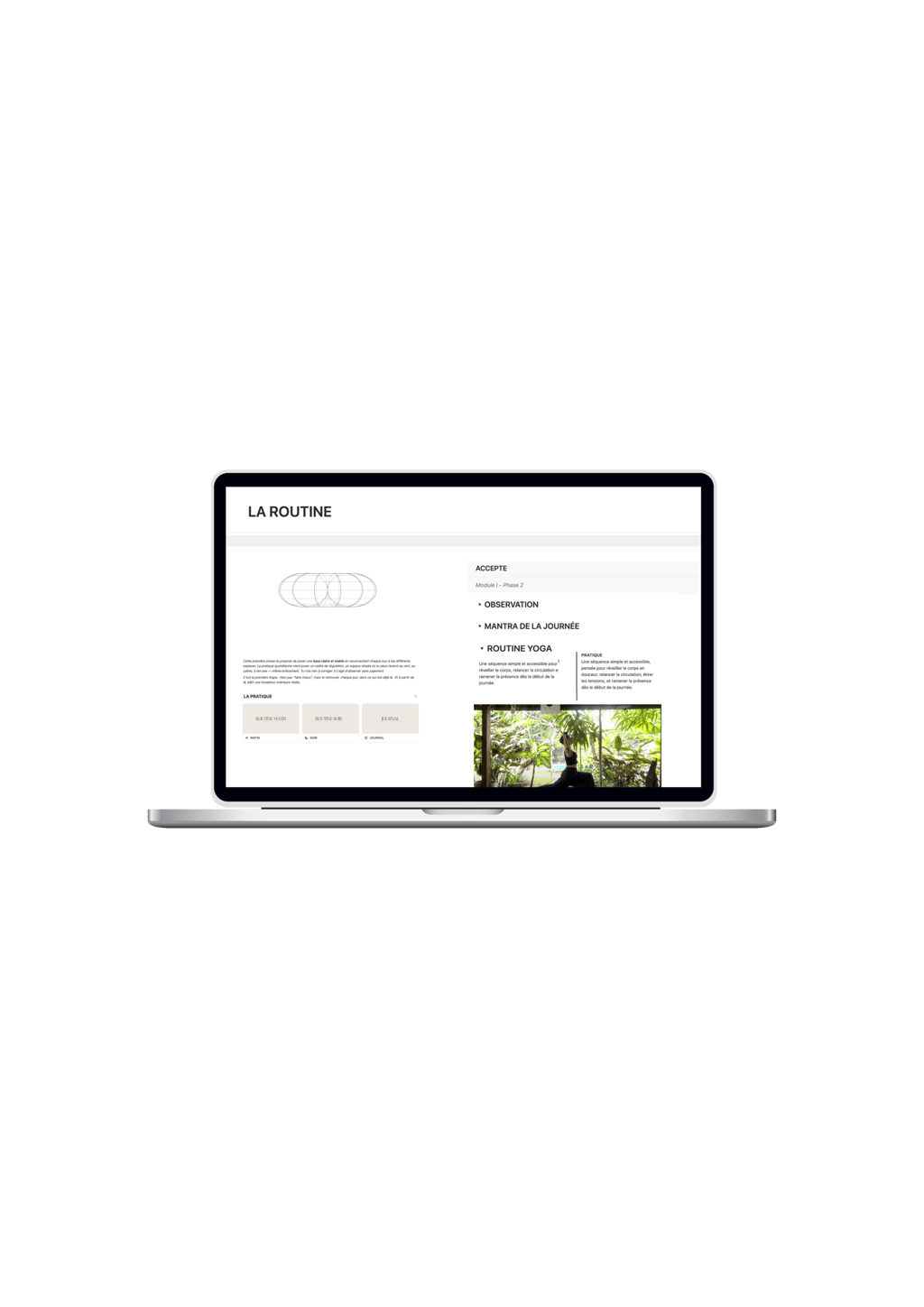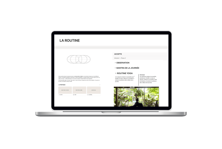Tu conserves aussi l’accès à ton espace Notion pendant 6 mois, avec toutes les ressources, routines, protocoles et replays du programme.