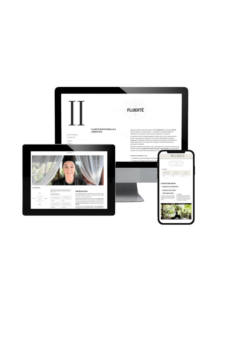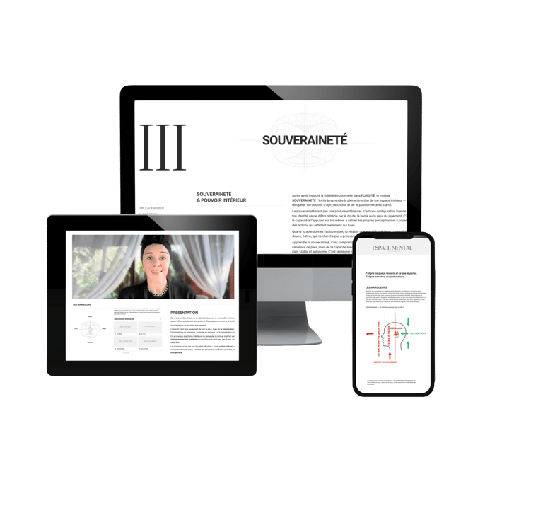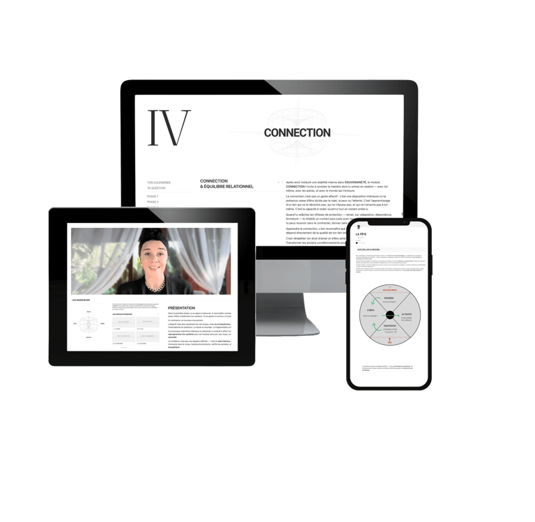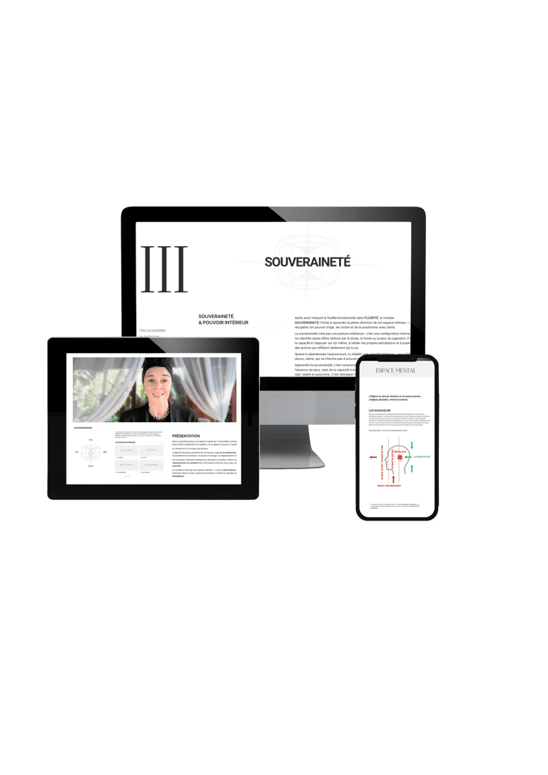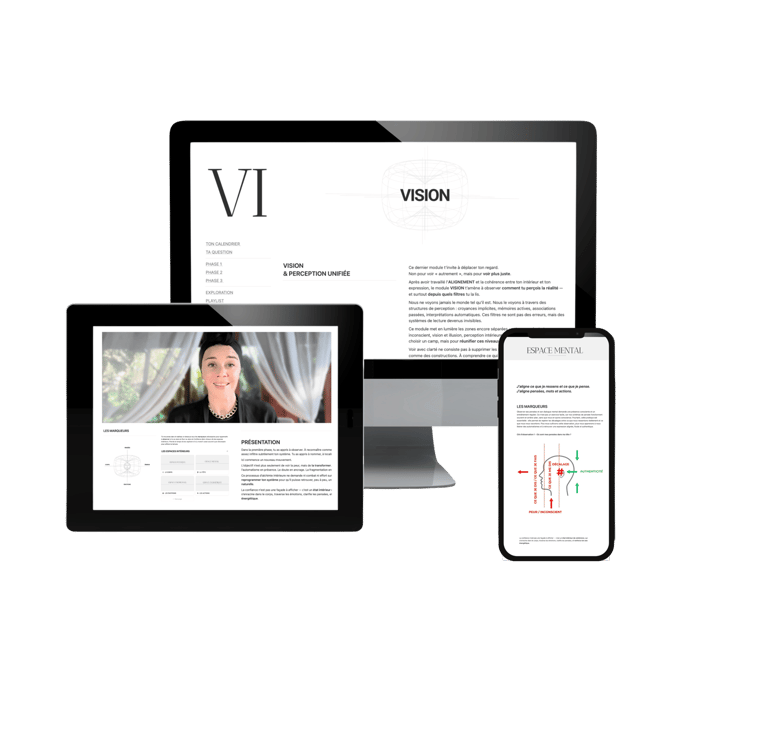 Module après module, la manière dont tu penses, ressens, décides et agis se transforme — jusqu’à une version plus stable et souveraine de toi-même.