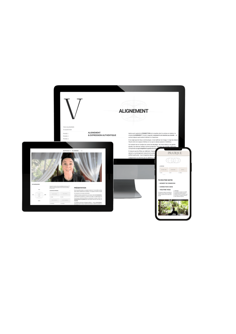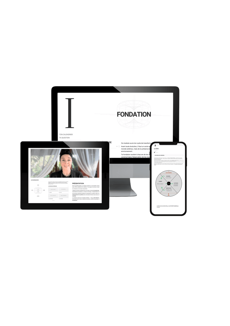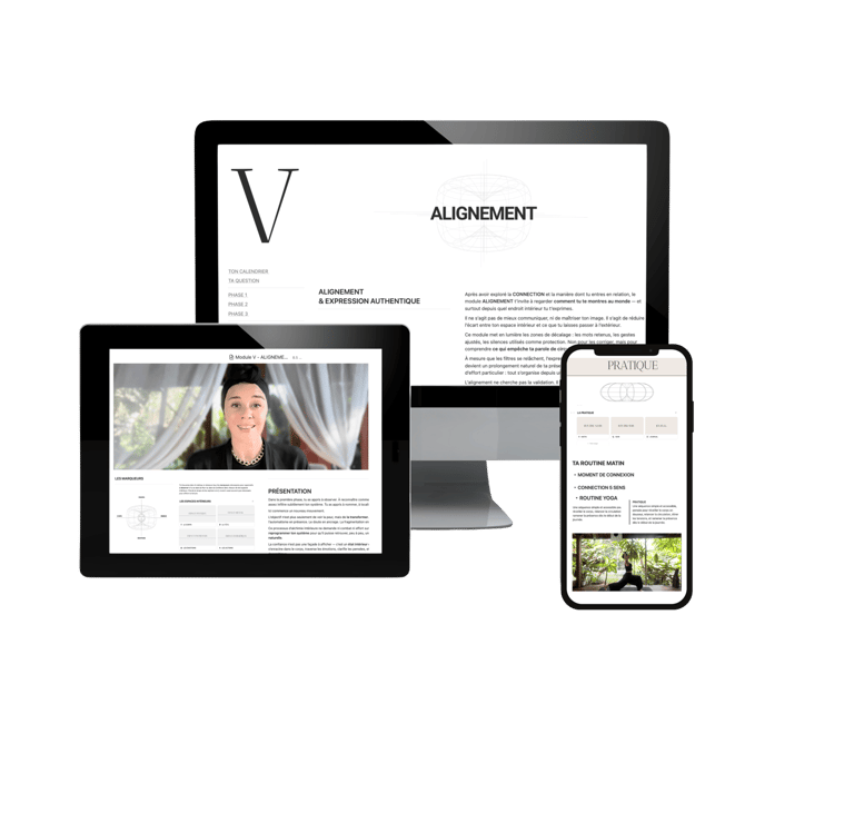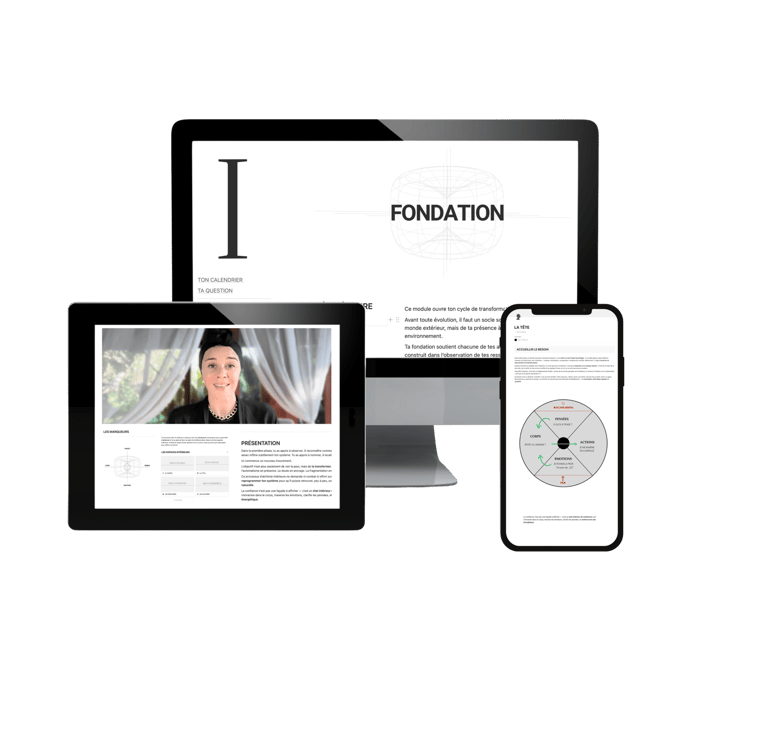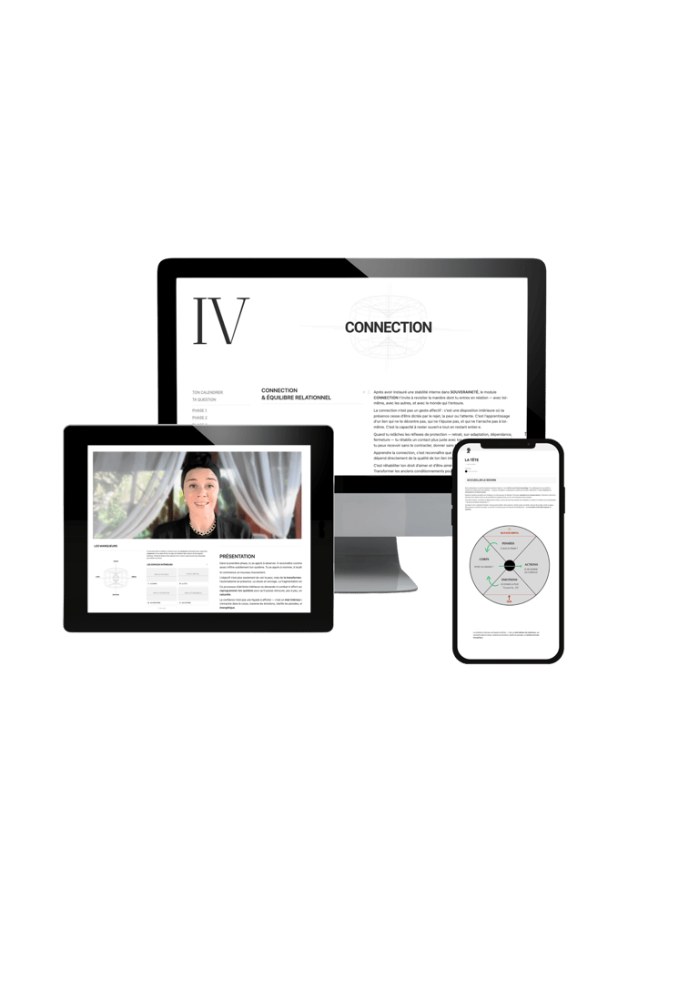 Module après module, la manière dont tu penses, ressens, décides et agis se transforme — jusqu’à une version plus stable et souveraine de toi-même.