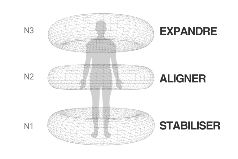 La plupart des approches interviennent sur un seul niveau à la fois. Certaines t'aident à comprendre. D'autres à agir. D'autres régulent ton système nerveux ou ouvrent ta perception. Tout cela est réel — mais tant que chaque dimension évolue séparément, le système dans son ensemble ne change pas.